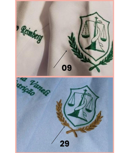 ⭐ Acompanha o Brasão (29) ou a Logo (09) de Nutrição (você escolhe acima item 9 a Manga ou Peito onde iremos Bordar)