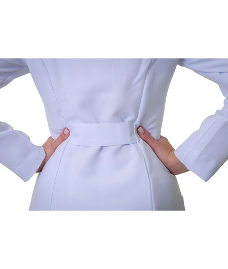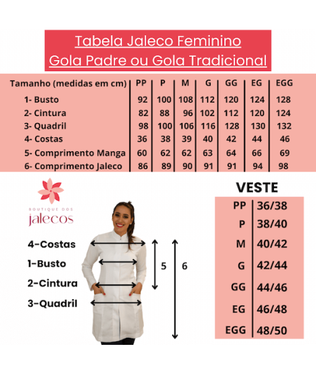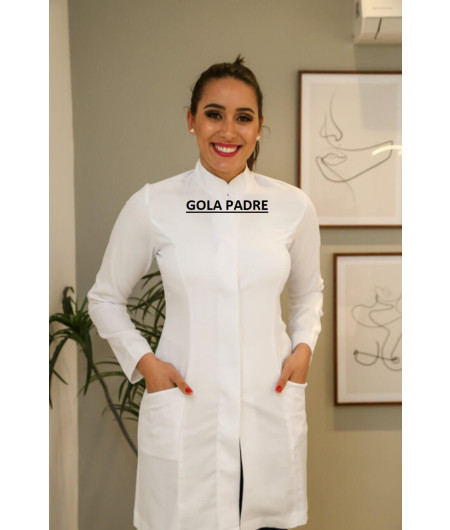 O Jaleco Feminino Personalizado Gola Padre / Gola Tradicional Branco com bordado Farmácia Brasão é destinado para as Profissionais de Saúde modernas e estilosas.