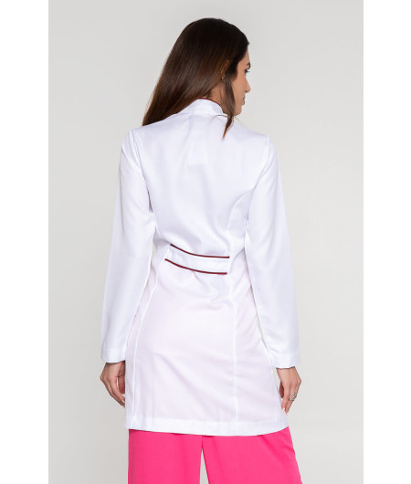 Você está avaliando: Jaleco Gola Padre Branco Debrum BORDÔ e punho Feminino Acinturado