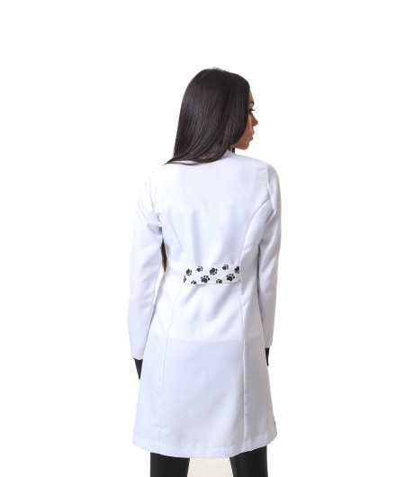 O Jaleco Feminino Personalizado Gola Padre Branco Pet Love com detalhe estampado é destinado para as Profissionais de Saúde modernas e estilosas.