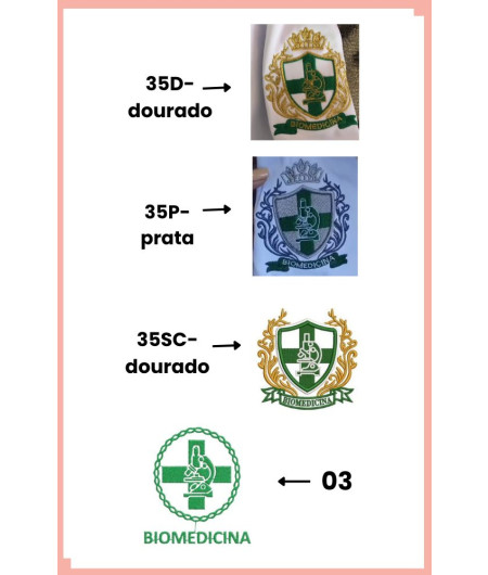 ⭐ Acompanha o Bordado Logo (03, 35 D dourado ,35 P prata ou 35SC ) Curso de Biomedicina (você escolhe acima item 9 nas mangas ou no peito onde iremos Bordar)