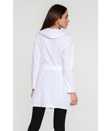 O Jaleco Juliane foi desenvolvido em tecido exclusivo de alfaiataria com elastano seca rápido e quase não amassa.