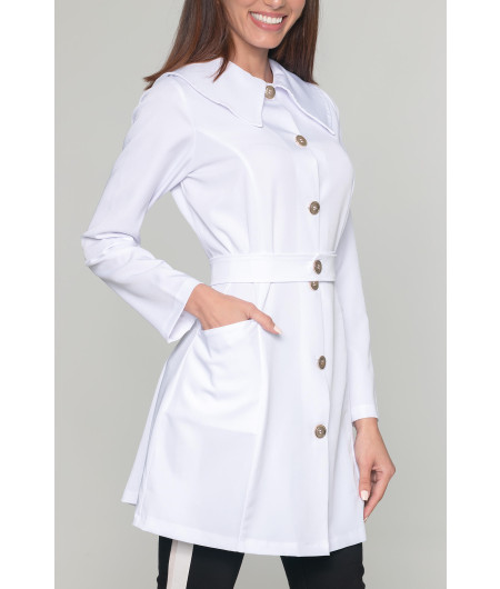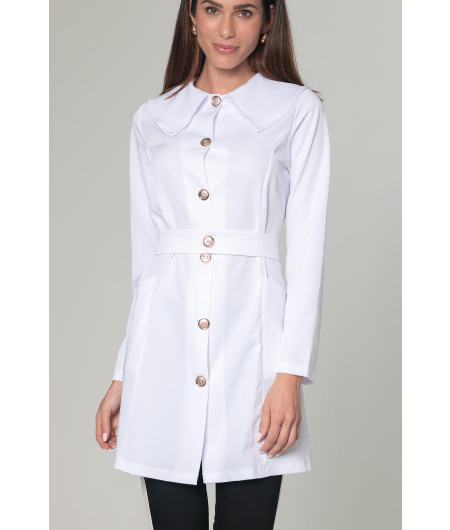 O Jaleco Juliane modelagem que se ajusta perfeitamente ao corpo trazendo conforto e elegância para a peça, tem recorte para alongar a sua silhueta, possui bolsos funcionais na parte inferior e botôes dourados banhados a zamac (que não oxida) acompanha cinto com botôes dourados e manga longa,deixando a peça mais sofisticada.