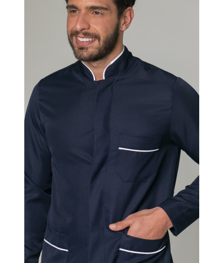 Você está avaliando: Jaleco Masculino Gola Padre Azul Marinho com Debrum Branco