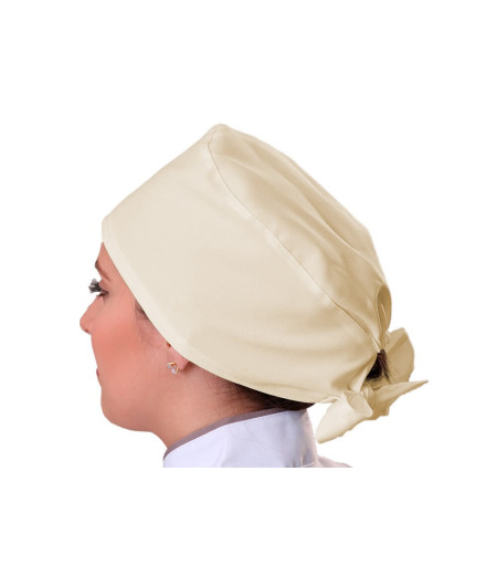 Touca com elástico e tiras para amarrar na parte posterior